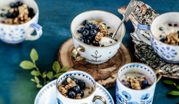 Mustikka-pannacotta ja mantelimuru