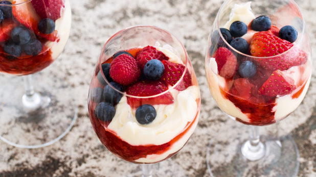 Kesän helpoin kerrosjälkiruoka syntyy vaivattomasti mökkikeittiössäkin. Suomalaiset marjat kruunaavat nautinnon.