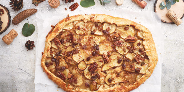 Galette on rennolle leipurille sopiva piiras, jossa taikina taiteillaan mutkattomasti täytteen päälle. Voit käyttää pohjaan myös valmista piparitaikinaa.
