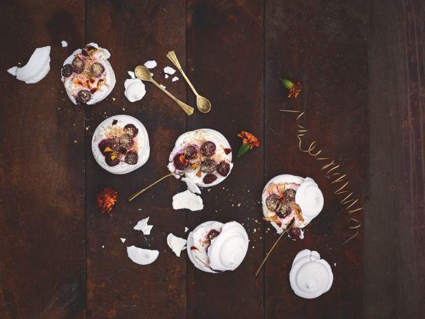 Kirsikkainen ruusu-pavlova