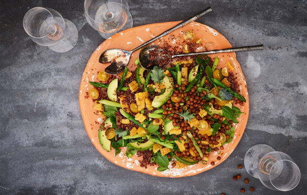 Kvinoasalaatti ja kikhernekrutongit