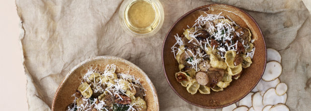 Valkosipuliöljyssä paistettu maa-artisokka maistuu lihaisalta. Loraus tryffeliöljyä tekee pastasta salonkikelpoisen.
