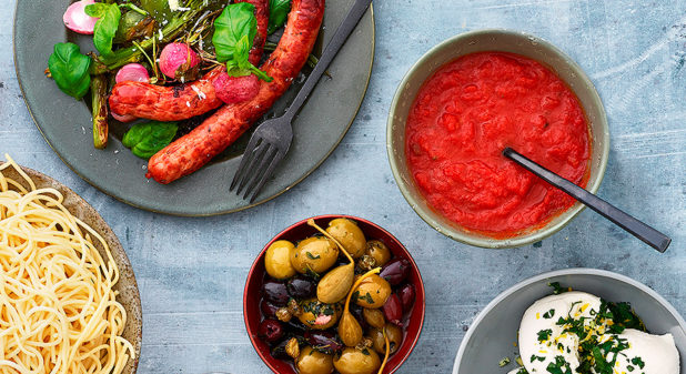 Vietä rento ilta italialaisittain. Keitä iso kattilallinen pastaa, nosta tarjolle tomaattikastikkeen ja sattumien kanssa. Anna jokaisen vieraan koota oma annoksensa ja nauti italialaisen viinin kera.