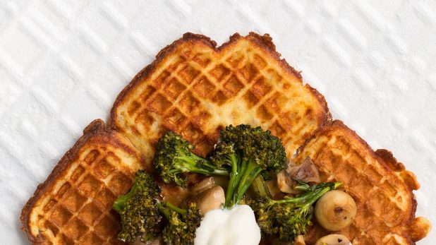Vohvelit ovat taas muotia. Unohda hillo ja kermavaahto, nyt vohvelit rapeutetaan kuohuviinillä ja tarjotaan sieni-broccoliinitäytteen kera.