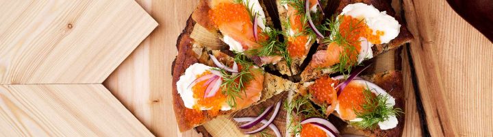 Blineistä inspiroituneet täytteet ladotaan kypsän piirakkapohjan päälle. Piimä ja tattarijauhot antavat pohjalle hapokasta maukkautta. Nautitaan hyvän crémantin kera.