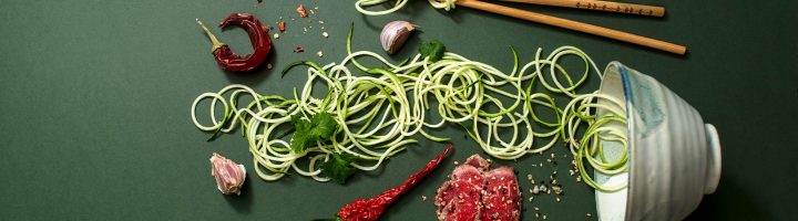 Kesäkurpitsa, siitä syntyy parhaat gluteenittomat nuudelit aasialaisella twistillä. Tarjoa alkupalaksi tai nauti kevyenä lounaana. Valitse viiniksi herkullinen valkoviini.
