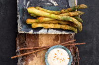 Rapsakat fritatut parsat ovat kevään naposteluhitti. Dippaa mandariinimajoneesiin ja kulauta kurkusta alas kesäisen riesling-kuohuviinin kanssa.