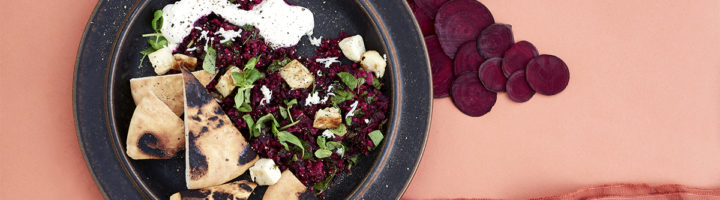 Punajuuri-halloumtabboulleh ja piparjuurikastike