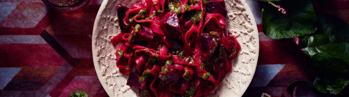 Joulun välipäivinä maistuu joulun maut, mutta uudessa muodossa. Hyödynnä rosollin jämät punajuuri-pestopastaan.