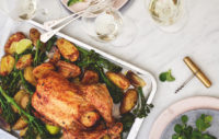 Yhden pellin taktiikka on sesongin rennoin ruoka. Ensin uunin lämpöön pääsee kypsymään tipu. Sen seuralaisiksi ladotaan kevään ensimmäiset uudet perunat ja broccolinit.
